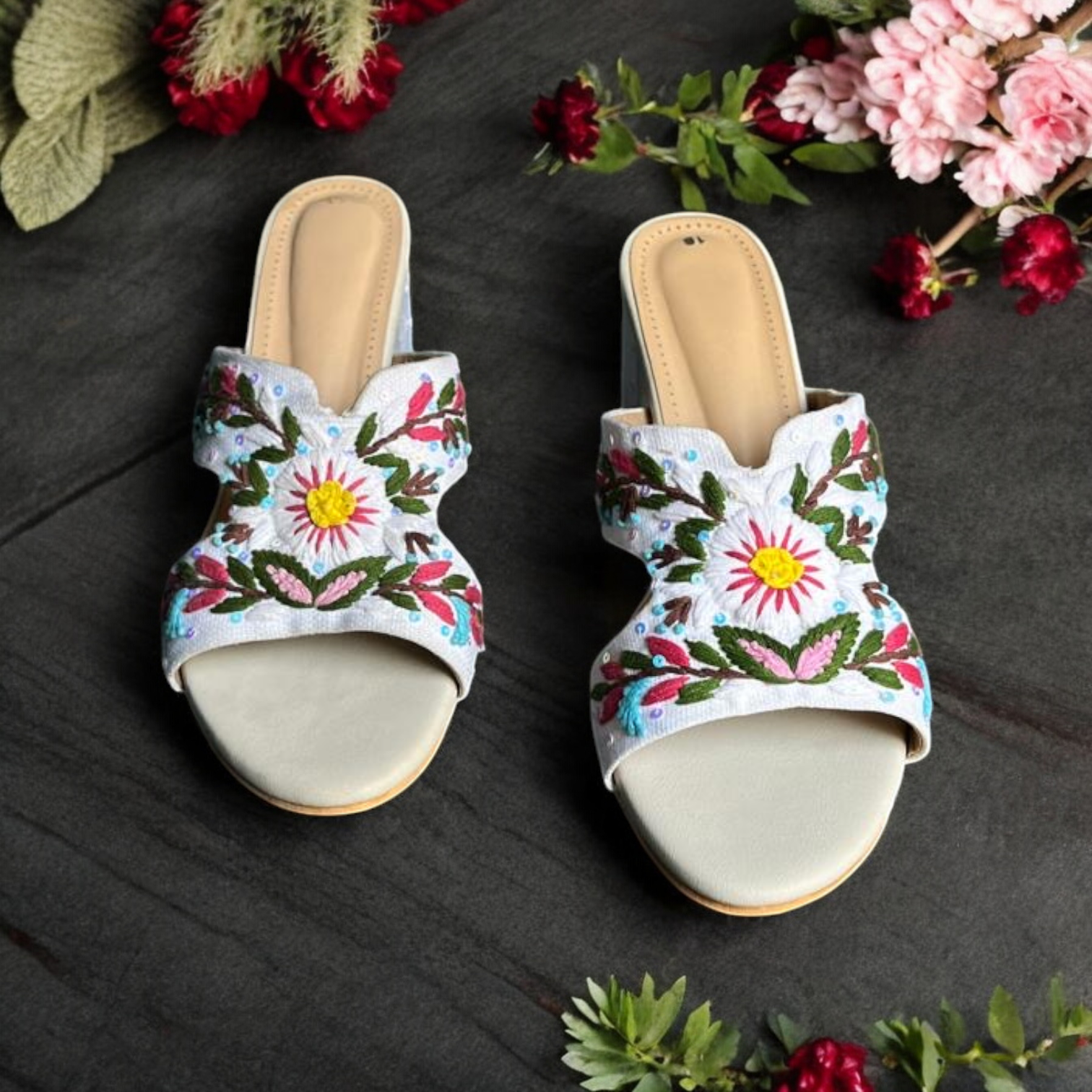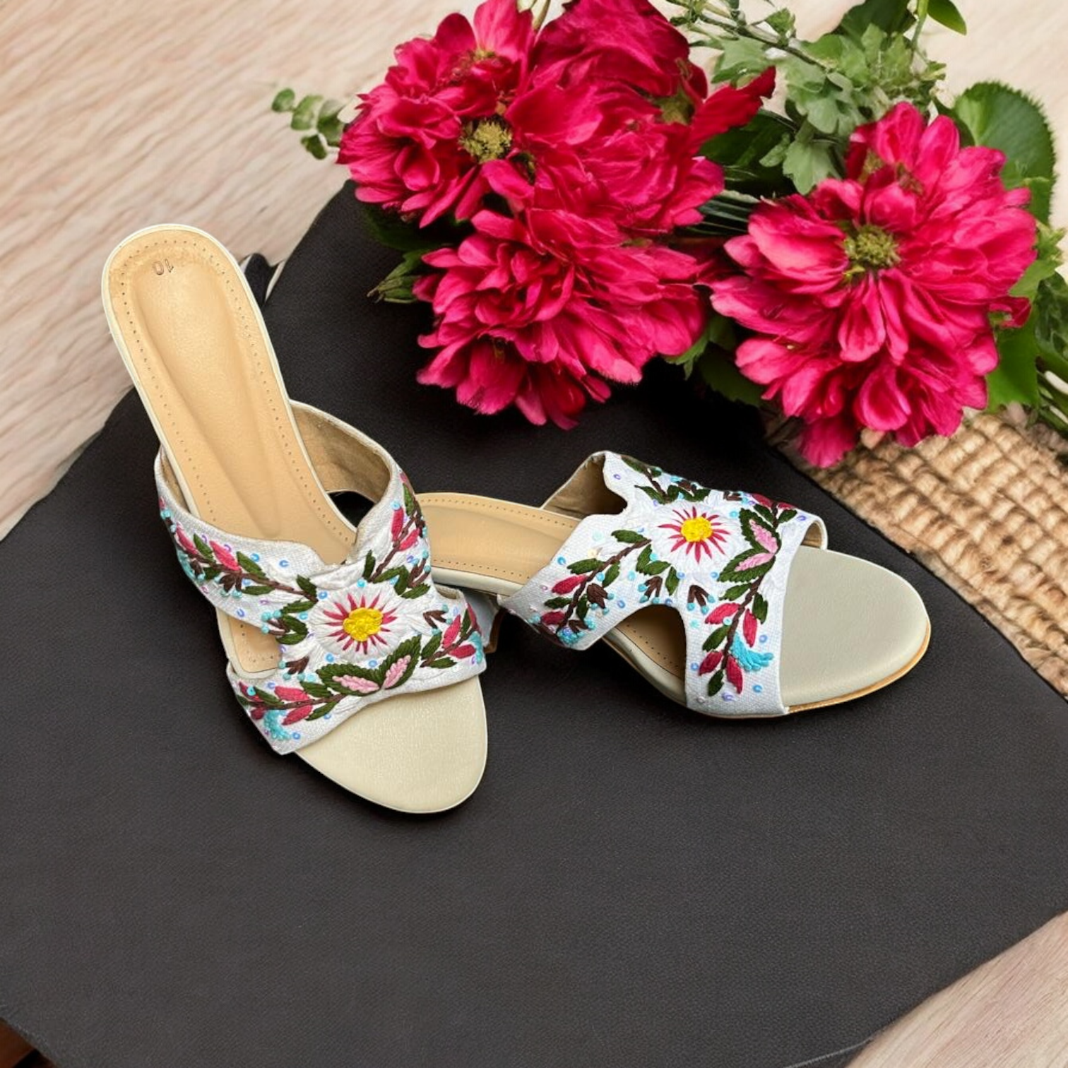 Embrace natural elegance with our Artisan Woven Straw & Leather Backless Mules. These charming slip-ons feature a beautifully intricate woven straw upper, creating a breathable and textured design that's perfect for warm weather. Complemented by rich, contrasting dark leather accents, they offer a sophisticated blend of rustic charm and modern style. The comfortable backless design makes them easy to wear, while the flat sole ensures all-day comfort. Ideal for adding an effortlessly chic touch to your casual outfits, from linen trousers to flowy summer dresses.