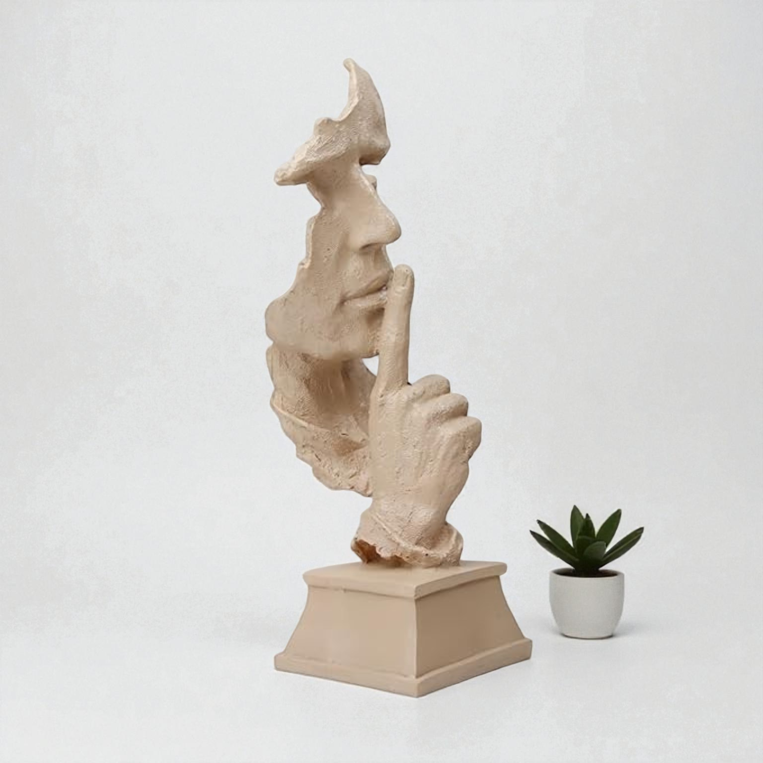 Make a compelling statement with The Silence Abstract Sculpture. This striking piece features a fragmented human face with a finger pressed to the lips, embodying the concept of silence, secrecy, or contemplation. The artwork challenges the viewer to look closer and reflect on the power of the unspoken.