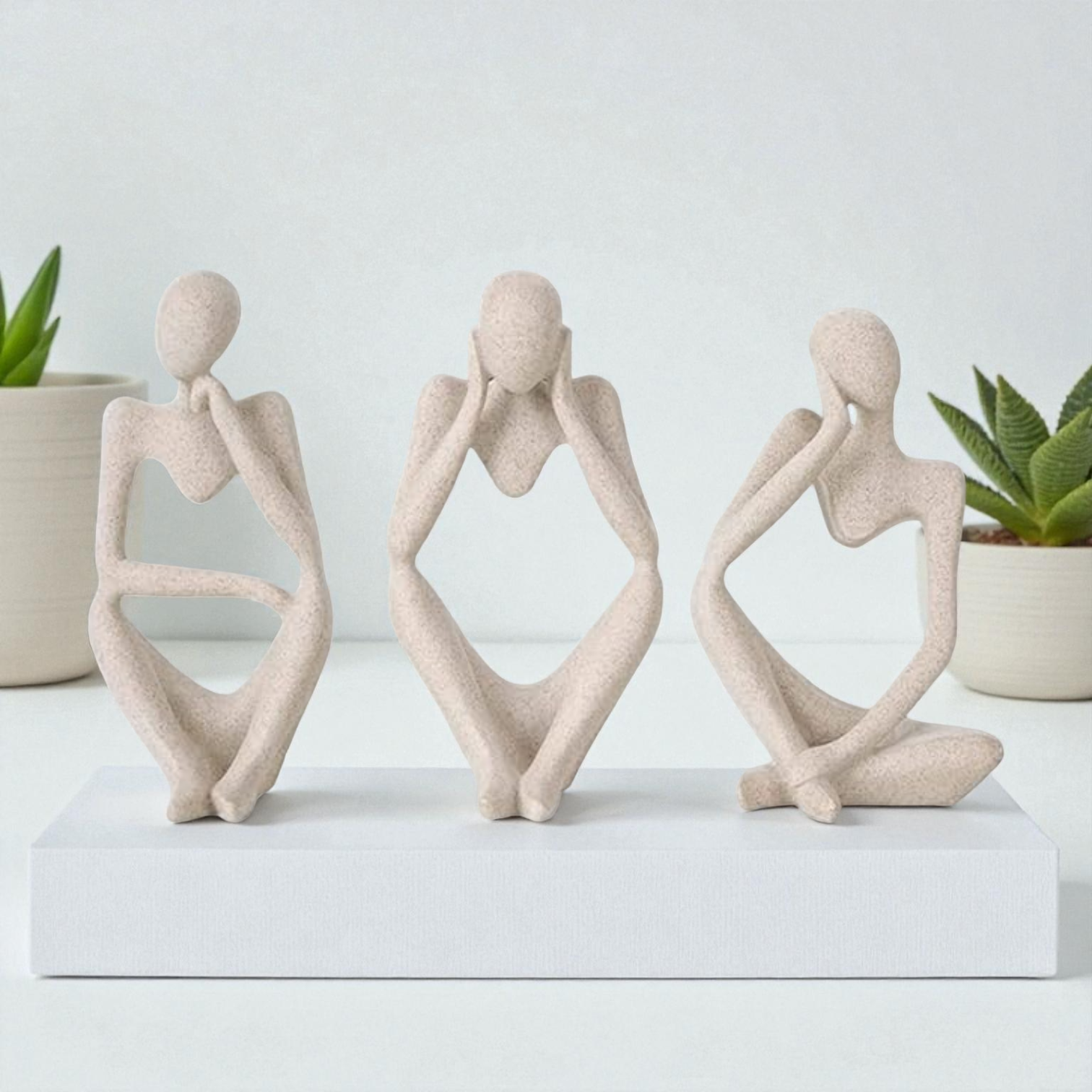 Bring a touch of minimalist elegance and philosophical depth to your space with this set of Three Abstract Thinker Figurines. These graceful, seated figures are rendered in a sleek, hollowed-out style, echoing the poses of "Hear No Evil, See No Evil, Speak No Evil," and encouraging reflection and mindfulness.