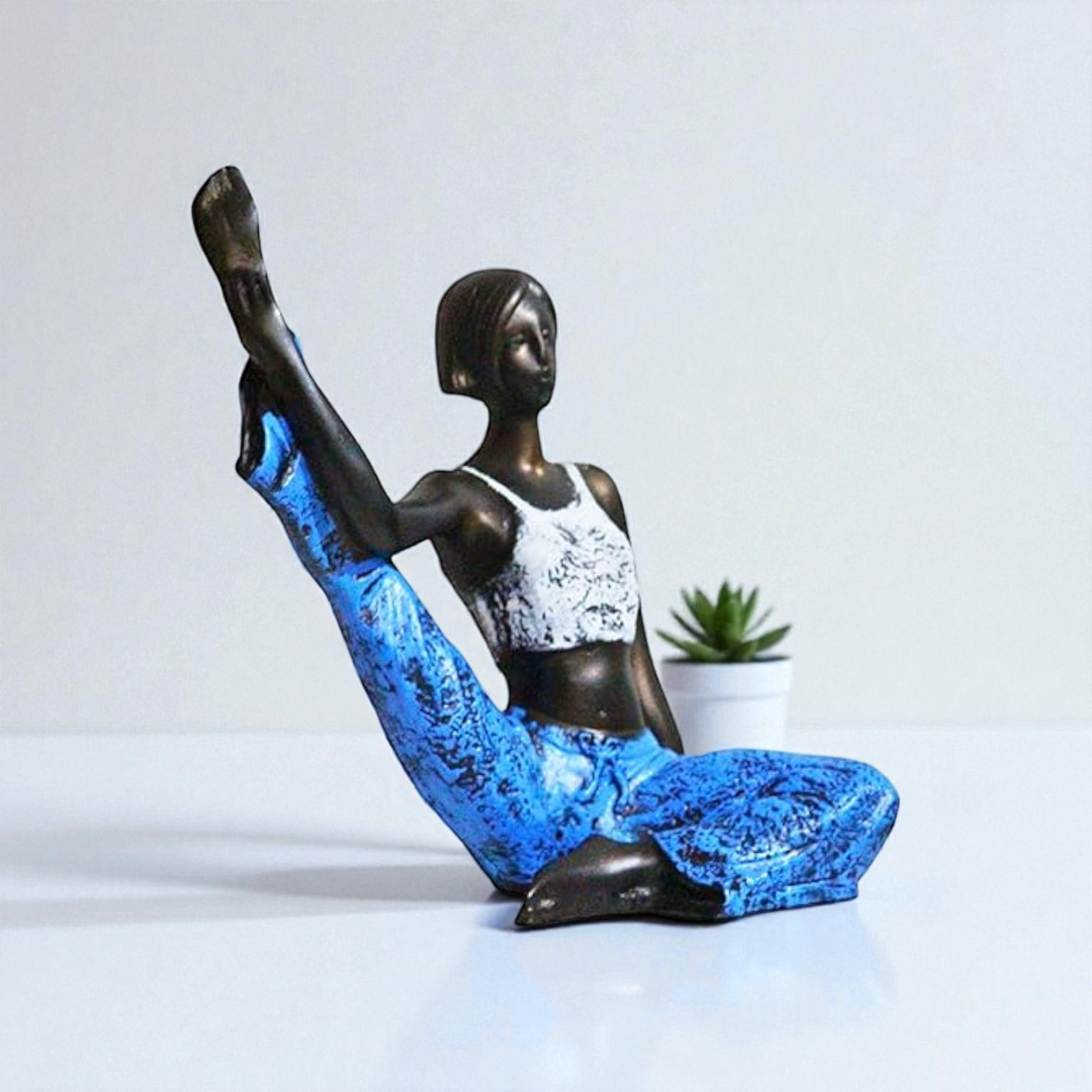Celebrate the pursuit of strength and flexibility with this vibrant Yoga Compass Pose Figurine. This sculpture captures a woman in a deep hip opener and side stretch, the Parivrtta Surya Yantrasana (Revolved Compass Pose), symbolizing determination, discipline, and inner focus.